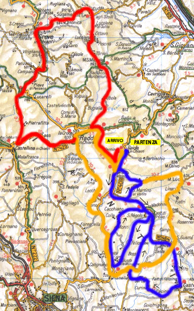 Gaiole in Chianti (SI), 24 giugno 2001 I percorsi proposti sono ben tre ed adatti a tutte le gambe. Il più breve di 75 Km presenta già 12 Km di salita in totale: quella più impegnativa è Monti in Chianti, e Brolio, che viene affrontato ben 3 volte, con pendenza intorno al 4-5%. Nonostante si tratti di un percorso corto lungo il percorso ci sono ben 2 ristori, ed inoltre il tempo massimo è stabilito in base all'arrivo dell'ultimo ciclista del lungo, per cui si può "prendersela comoda"!